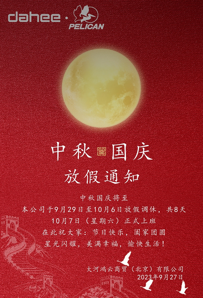 你們好!首先感謝大家一直給予我公司的鼎力支持,臨近中秋國慶大假之際,為共同做好相關工作,現(xiàn)將我司2023年中秋國慶放假相關事宜知會如下: